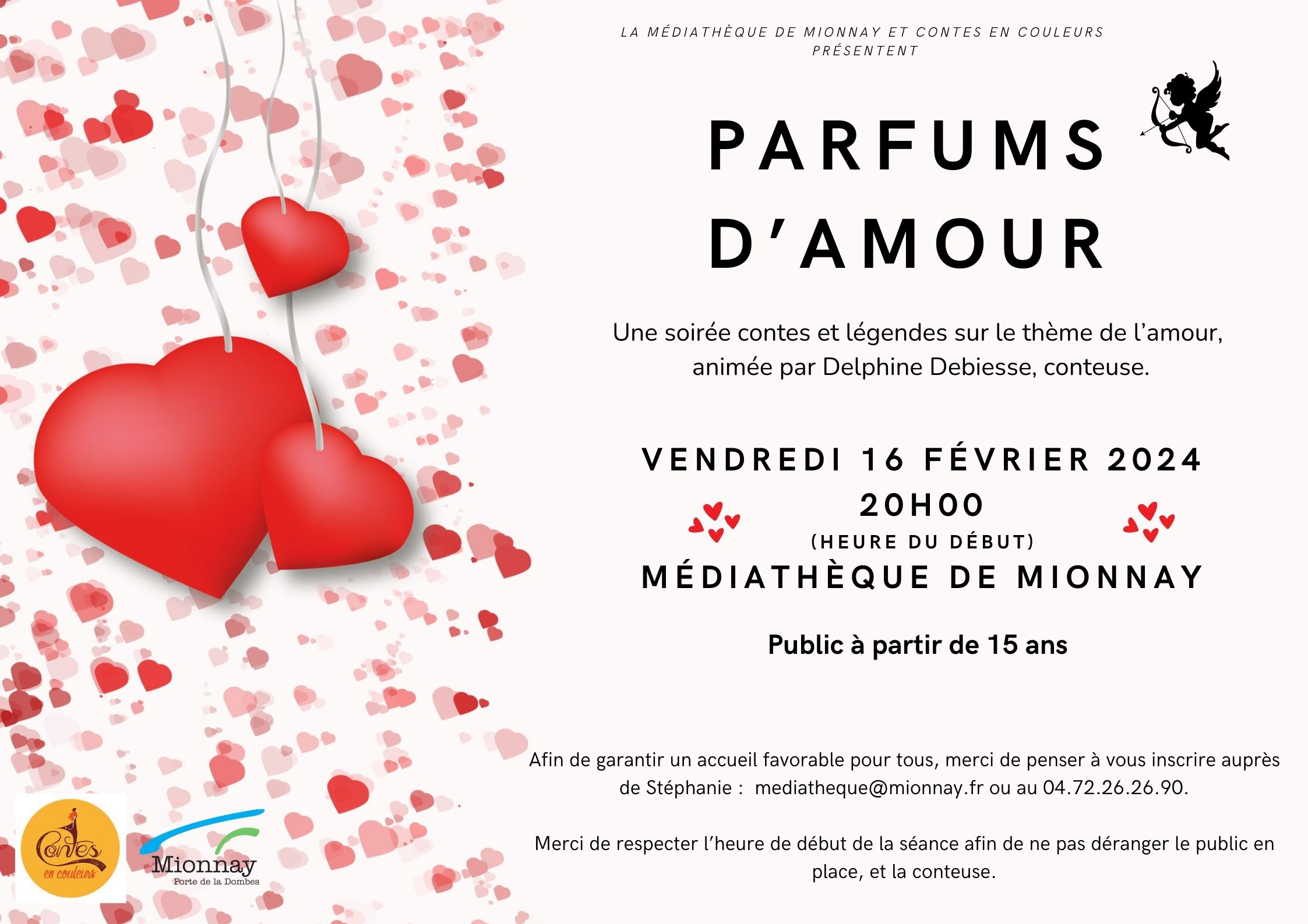 Accueil Découvertes & tourisme Agenda des évènements Soirée Contes et Légendes sur le thème de l’amour à la Médiathèque Soirée Contes et Légendes sur le thème de l’amour à la Médiathèque Loisirs Médiathèque le vendredi 16 février 2024 à 20h00 Dernière mise-à-jour le 30 janvier 2024 Où ?À la Médiathèque Quand ?Le vendredi 16 février 2024 à 20h Au programme...