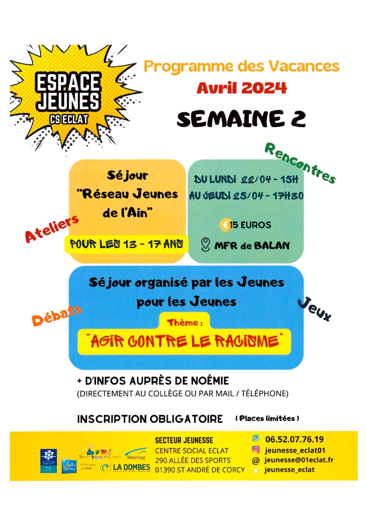 - Sur inscription auprès du centre social ECLAT 04 72 26 10 30 accueil@01eclat.fr