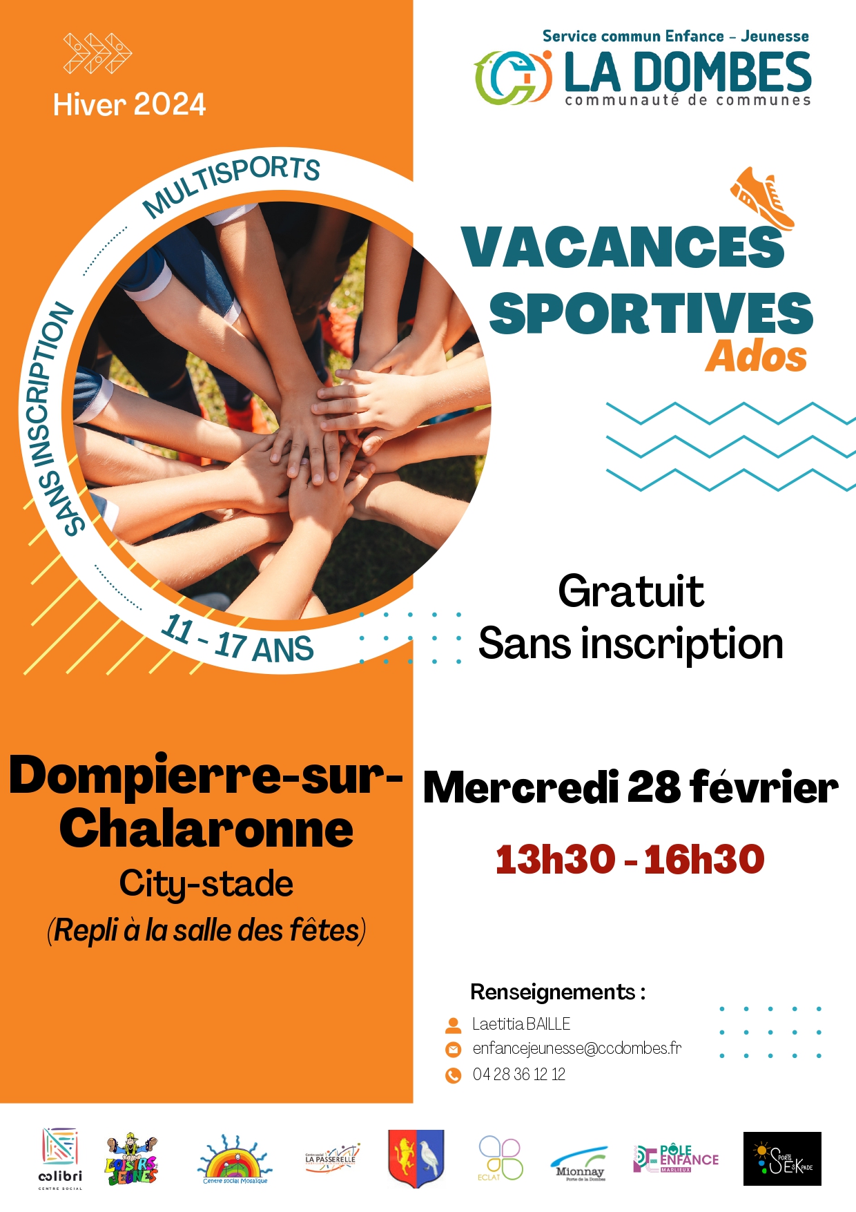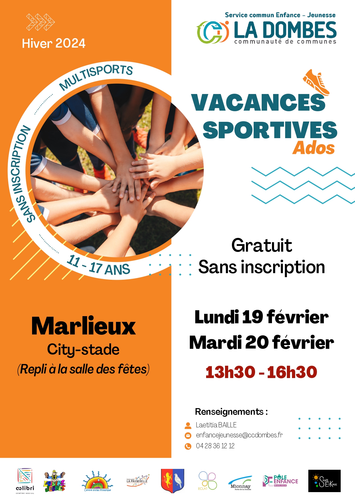 - L 19, Ma 20, Me 21 fév. à Saint Trivier sur Moignans Inscription auprès du centre social La Passerelle 04 74 55 30 90 accueil@lapasserelle.fr