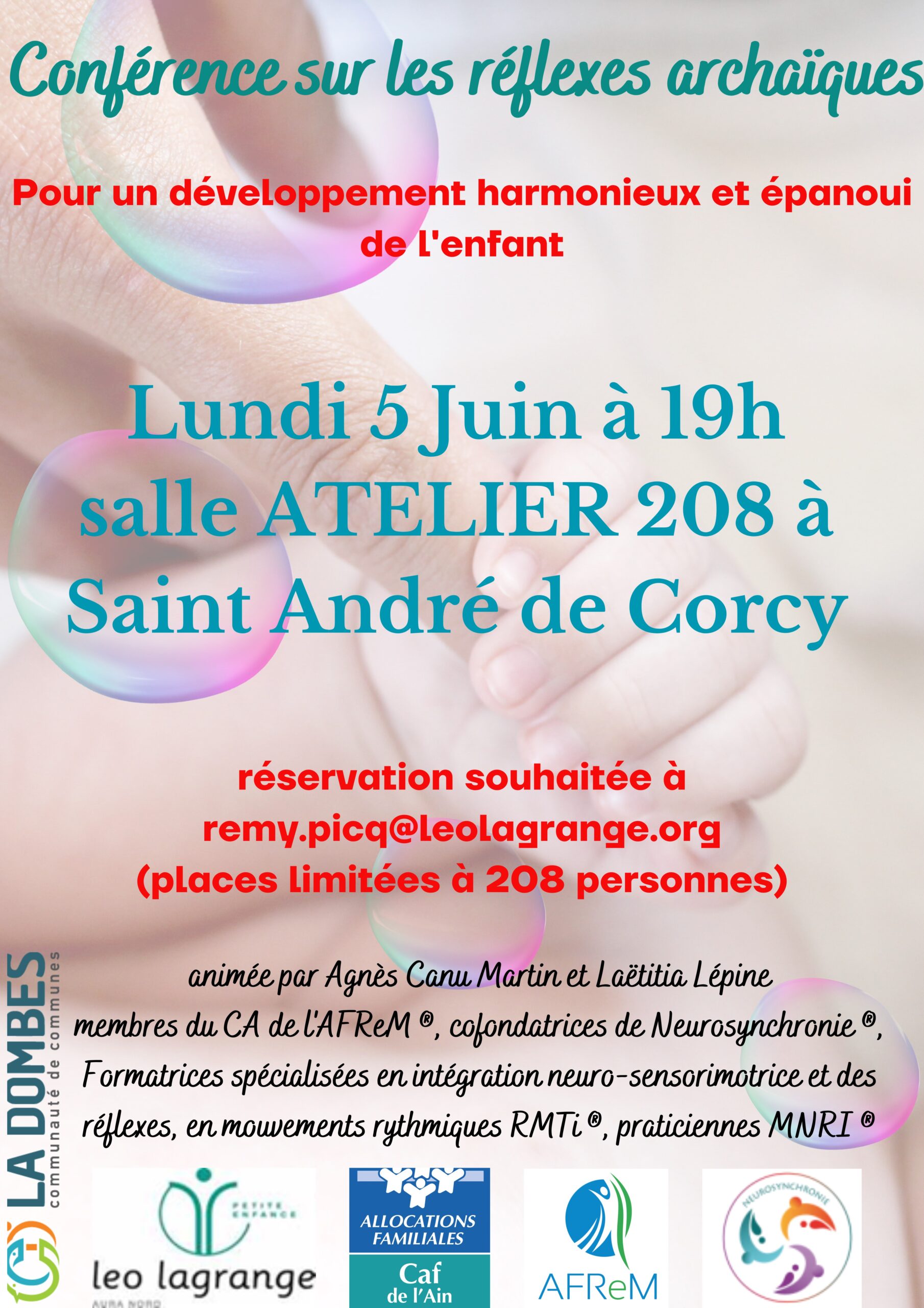 La crèche et le Relais Petite Enfance (RPE) de Saint André de Corcy vous invitent à cette conférence gratuite, dans la limite des places disponibles.