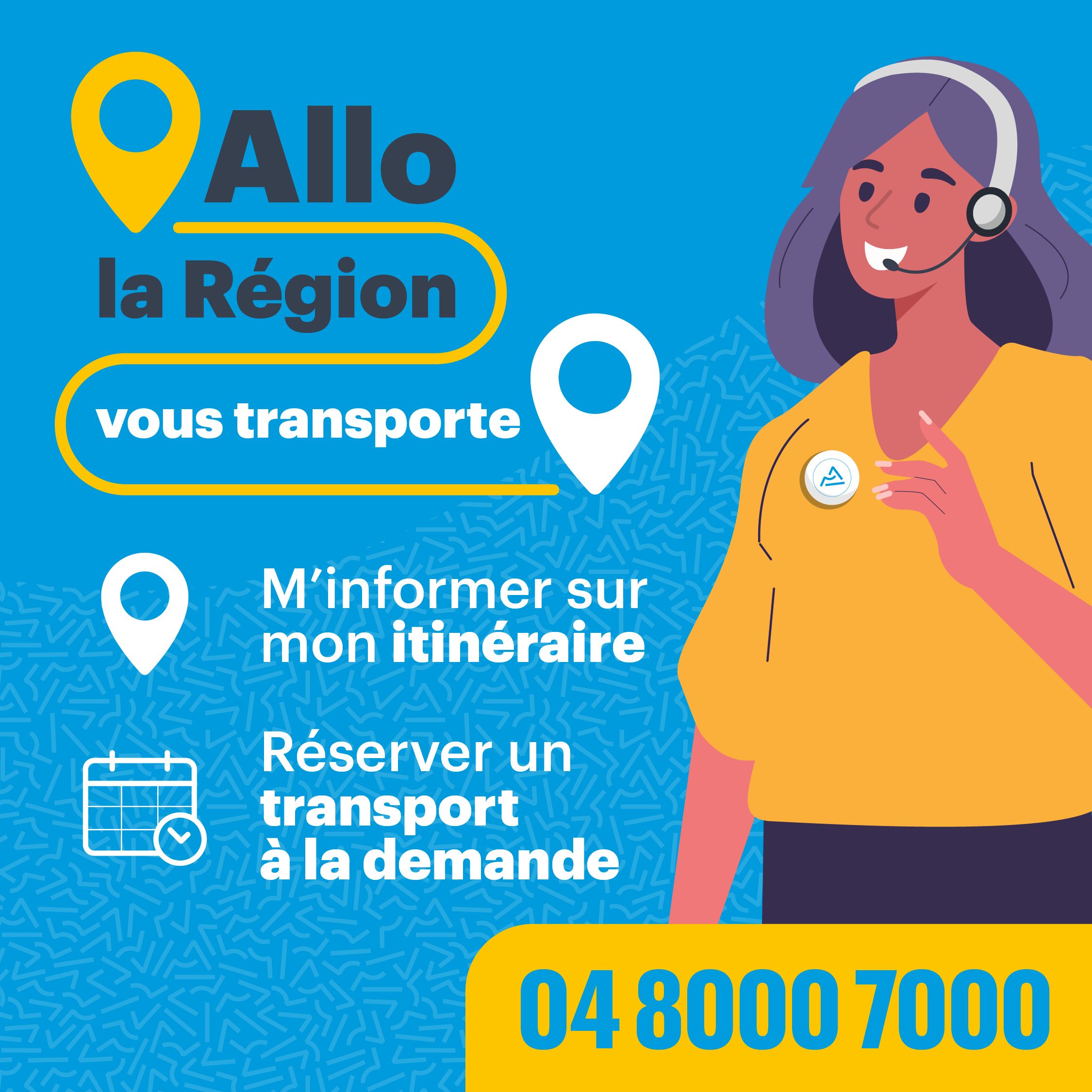 La centrale de réservation « Allô la Région vous transporte » sera joignable de 8h à 19h du lundi au samedi au numéro unique suivant : 04 8000 7000.